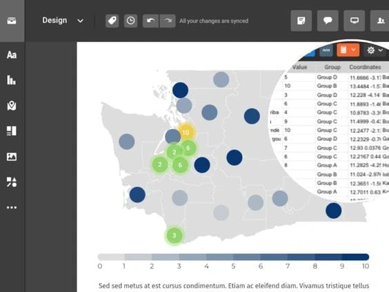 With Infogram, interactive elements such as custom tooltips and clickable map areas can be configured without complex coding. This makes it possible to add depth while keeping the interface clean and user-friendly.