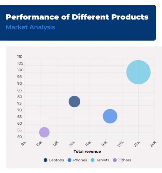 For instance, if you are comparing sales data for different products across regions, the larger bubbles indicate higher sales figures, while smaller bubbles represent lower sales. This makes it easy to understand the relative scale of the data points at a glance.