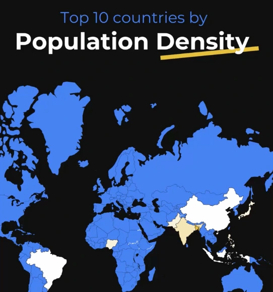 Use colors and patterns on a world map to show data for specific regions. Great for displaying things like population density, income, and political boundaries.