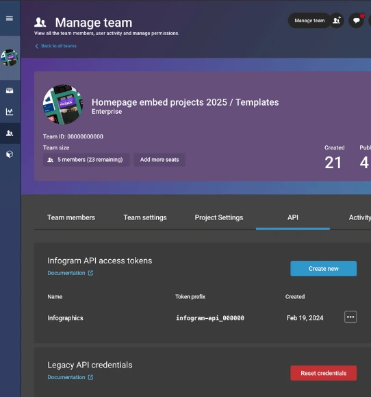 Um die Infogram API zu nutzen, müssen Sie ein API-Token in Ihren Kontoeinstellungen erstellen.