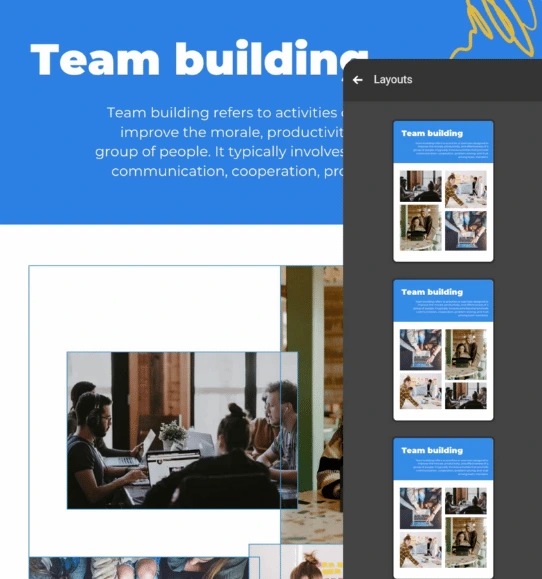 Gestalten Sie mühelos. Lassen Sie automatische Layouts die Anordnung übernehmen, damit Sie sich auf die Erstellung von Inhalten konzentrieren können, ohne sich mit Formatierungsproblemen heru