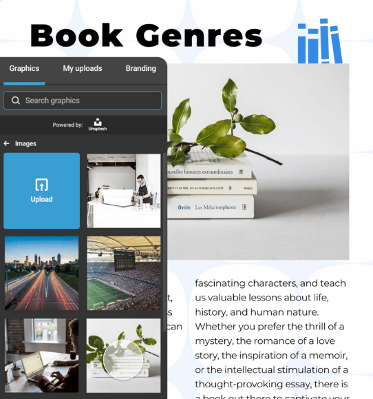 Die Bilder und Icons in den Bibliotheksressourcen stehen Ihnen zur Verfügung und können in Ihren Infogram-Projekten verwendet werden. Dies beseitigt die Notwendigkeit, nach externen Ressourcen zu suchen oder sich um Urheberrechtsprobleme zu kümmern.