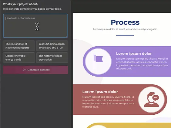 AI boosts creativity by offering suggestions for layouts, visuals, and presentation styles based on your data. It can transform paragraphs into concise bullet points, recommend visuals, and provide design ideas to help you create engaging AI infographics effortlessly. This AI-powered assistance removes creative blocks, ensuring a smooth and efficient design process.