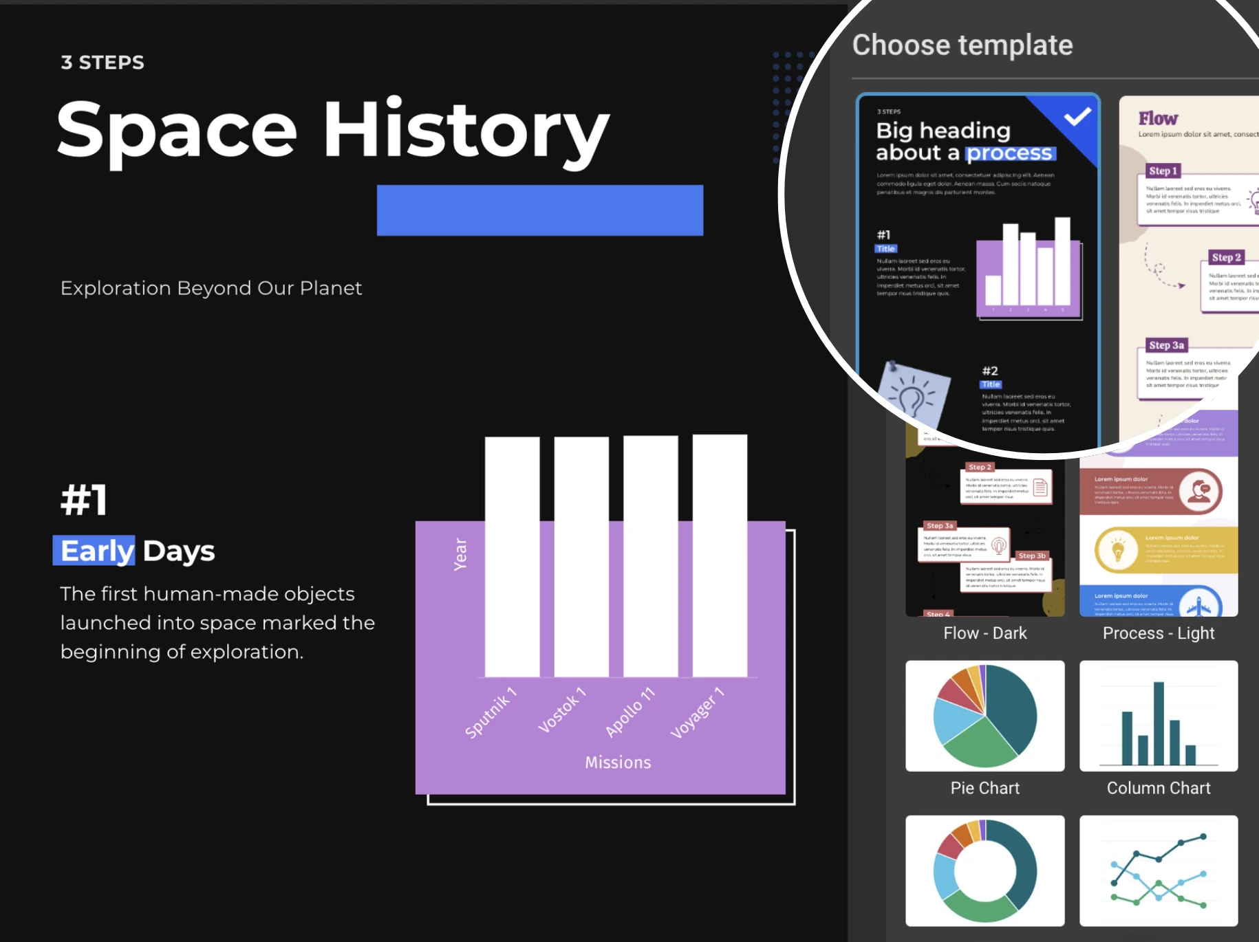 Infogram’s infographic AI generator speeds up the process by suggesting the best layout and producing content based on your input. Whether you're visualizing data, explaining a concept, or summarizing information, AI automates much of the design process. This allows you to focus on refining the final touches rather than starting from scratch, saving you valuable time.