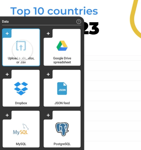 Infogram offers multiple data import options to suit your needs. You can easily import data from popular online databases, allowing you to connect directly to your data source and visualize it in real-time. Not only that, but Infogram also enables you to import data from external sources like Google Drive or JSON feeds.