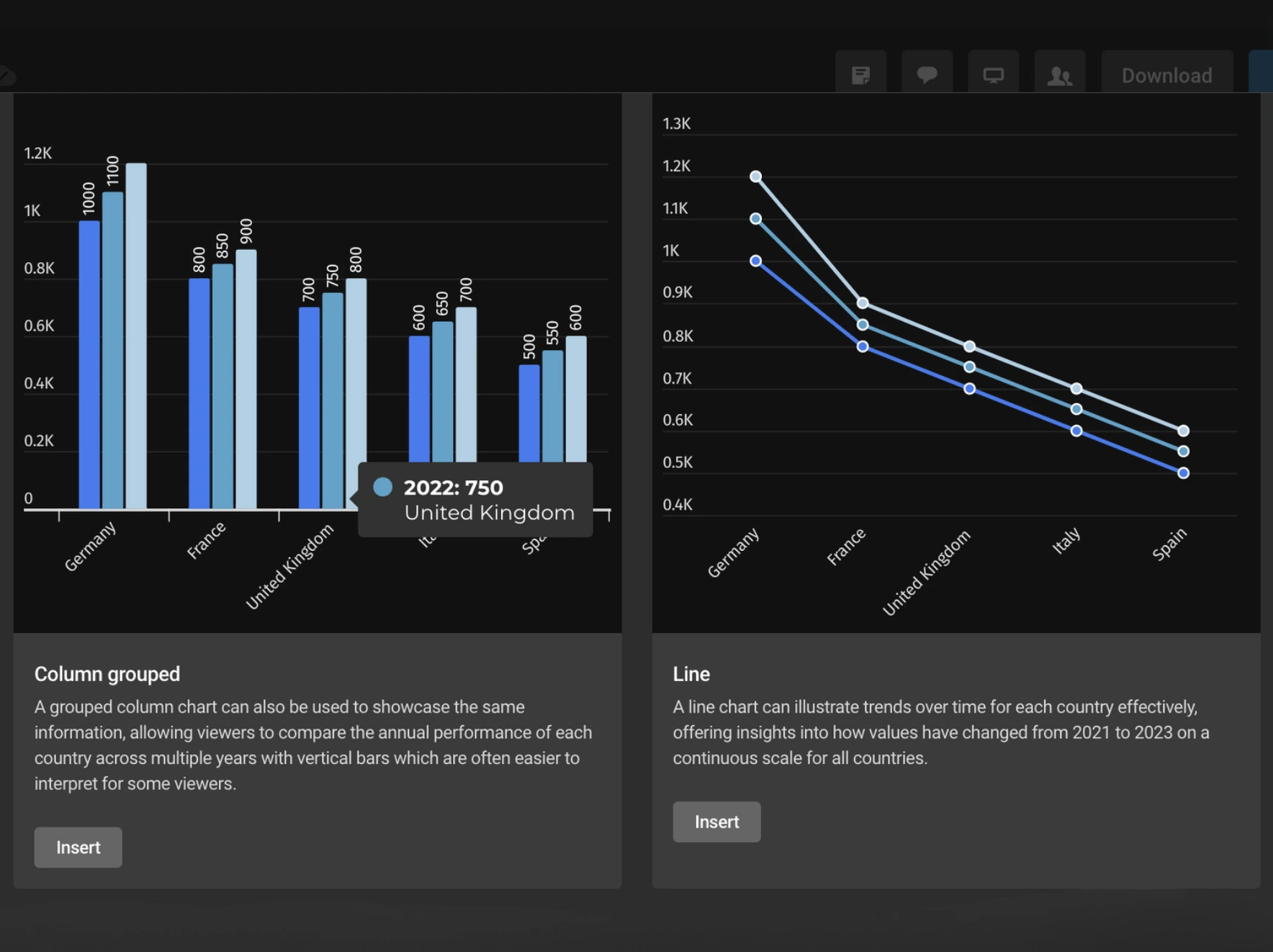 Streamline your workflow by automating the chart selection process. Instead of spending time designing charts yourself, you’ll receive quick suggestions for the most suitable chart options.