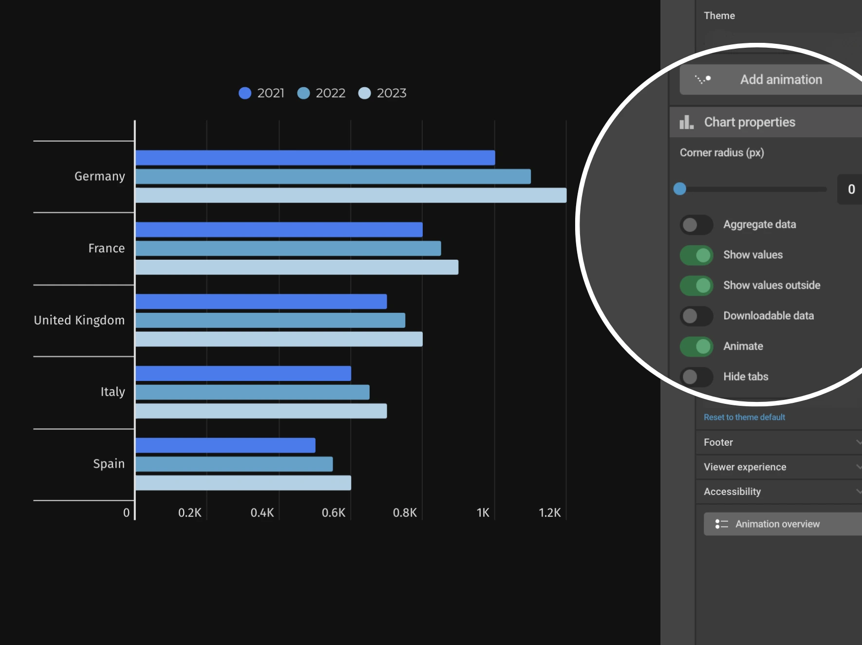 Eliminate the trial-and-error of manual design with our tailored chart suggestions. Infogram's user-friendly interface simplifies the creation of charts for your needs, regardless of your design experience. Whether you’re a beginner or an expert, you can effortlessly produce high-quality visualizations.