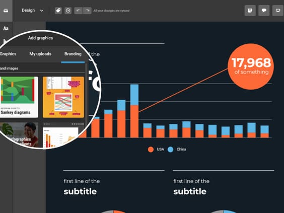 Whether you are a marketer, a journalist, a non-profit organization, or a business professional, brand representation is crucial. The quality and consistency of your branding across all your charts and reports can significantly impact your professional image. Infogram's customized layouts help to communicate your corporate identity and enable faster, more efficient creation of high-quality content.