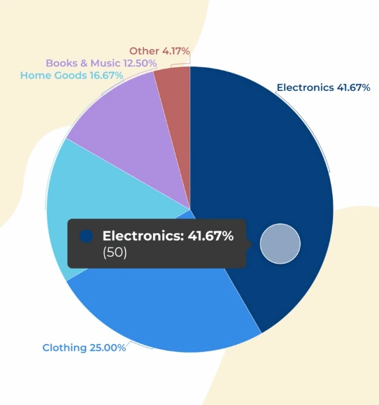 Cet accent visuel vous aide à identifier rapidement quelles catégories ont la présence la plus importante dans les données. Que ce soit pour mettre en avant vos produits les plus vendus ou pour mettre en valeur les principaux contributeurs à un budget, un diagramme circulaire fait ressortir les catégories dominantes.