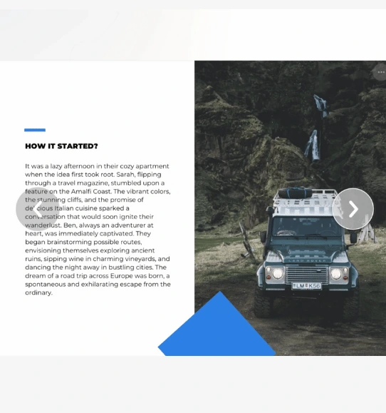 Après un voyage, transmettre vos expériences à travers des diapositives interactives donne vie à votre récit. Utilisez des fonctionnalités immersives telles que des images, des cartes interactives et des graphiques attrayants pour mettre en valeur les points forts et les informations de votre voyage. L'outil de création de diapositives intuitif d'Infogram facilite la création de ces récits captivants, offrant une gamme d'options de personnalisation qui vous permettent de créer des diapositives captivantes et visuellement attrayantes qui transportent votre public vers les lieux que vous avez explorés.