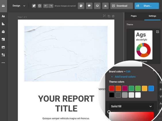 Créez des visuels soignés adaptés à votre marque sans compétences en design. Utilisez votre kit de marque pour personnaliser les graphiques avec logos et couleurs, comme une prévision budgétaire élégante pour les dirigeants. Les ressources libres de droits et fonctionnalités comme les dégradés de couleur ou le masquage d’image ajoutent une touche professionnelle.