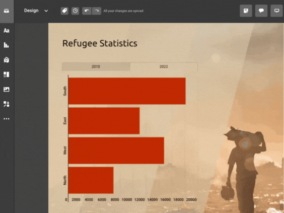 Infogram's government solutions incorporate a versatile chart library, interactive components, and customizable design features. These tools empower government institutions to present data in an engaging and interactive manner. By utilizing these resources, you can seize your audience's attention and elevate their comprehension of the data you're conveying.